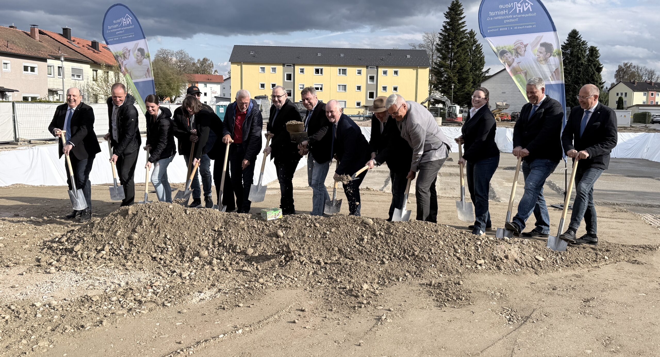 Mit dem offiziellen Spatenstich hat die Neue Heimat e.G. Trostberg gestern den Startschuss für ein bedeutendes Wohnbauprojekt in der Gerhart-Hauptmann-Straße in Traunreut gegeben. Geplant sind zwei Mehrfamilienhäuser mit insgesamt 40 hochwertig ausgestatteten Mietwohnungen sowie einer Tiefgarage und Stellplätzen. Das Vorhaben schafft nicht nur dringend benötigten Wohnraum, sondern setzt zugleich ein wichtiges städtebauliches Signal für die weitere Entwicklung des Standorts.